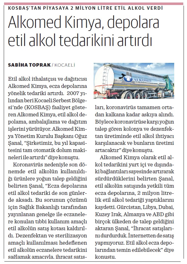 Alkomed Kimya, depolara etil alkol tedarikini artırdı