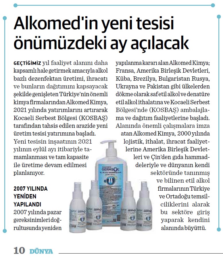Alkomed'in yeni tesisi önümüzdeki ay açılıyor